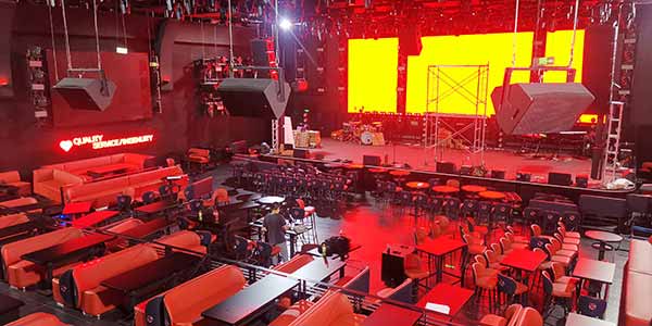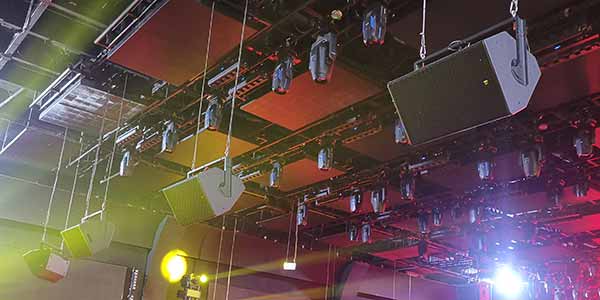主擴全頻音箱是12只單14寸三分頻線陣、3只雙10寸三分頻線陣,超低音箱10只雙18寸、4只單18寸,補聲音箱8只MF12和11只MF15。
