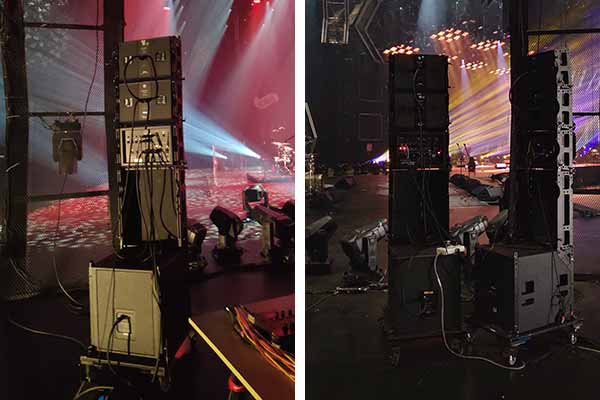 位于舞臺兩側的是我們MiniRay的迷你套裝——4只MiniRay全頻音箱、2只MiniRay-SUB超低音箱、2臺MiniRay-AMP功放。