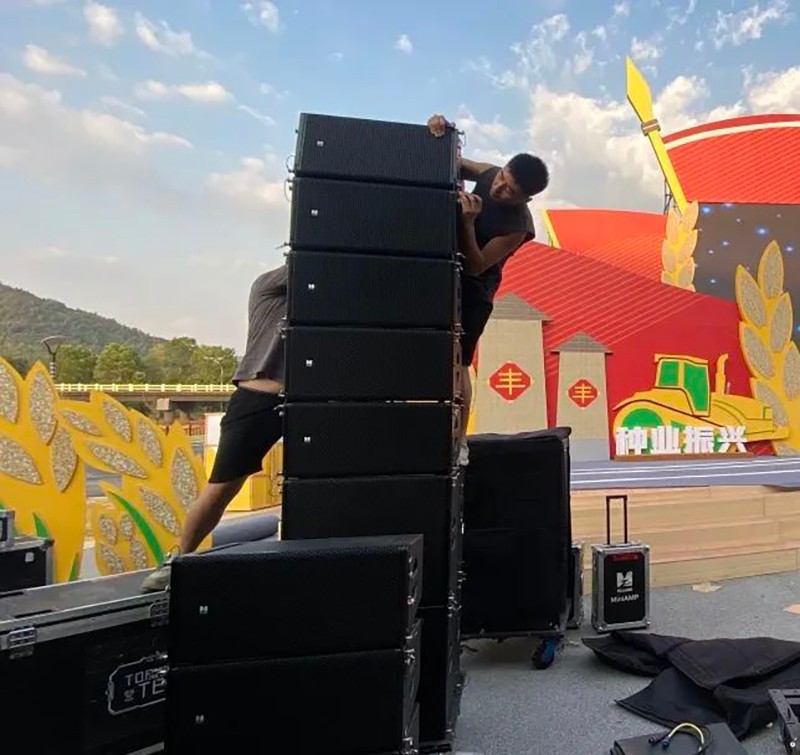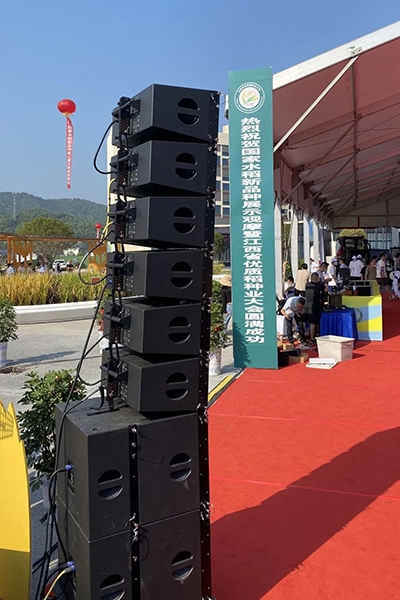 此次的優質稻種業大會用到了MZ AUDIO的線列陣全頻揚聲器MiniRay10和低頻揚聲器MiniSub18。