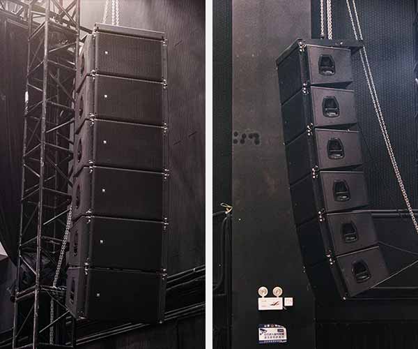 現場擴聲選用的是美真音響品牌,主擴使用的是MiniRay3C大型線陣列系統音箱,142dB的聲壓,小體積、大能量;搭配超強功率MiniSub28超低音箱,頻率下限達30Hz、且重量極輕;12AM單十二寸音箱作為舞臺返送;臺唇音箱為單十二寸MF12;專業級音箱、穩定的系統確保每一次演出順利進行!