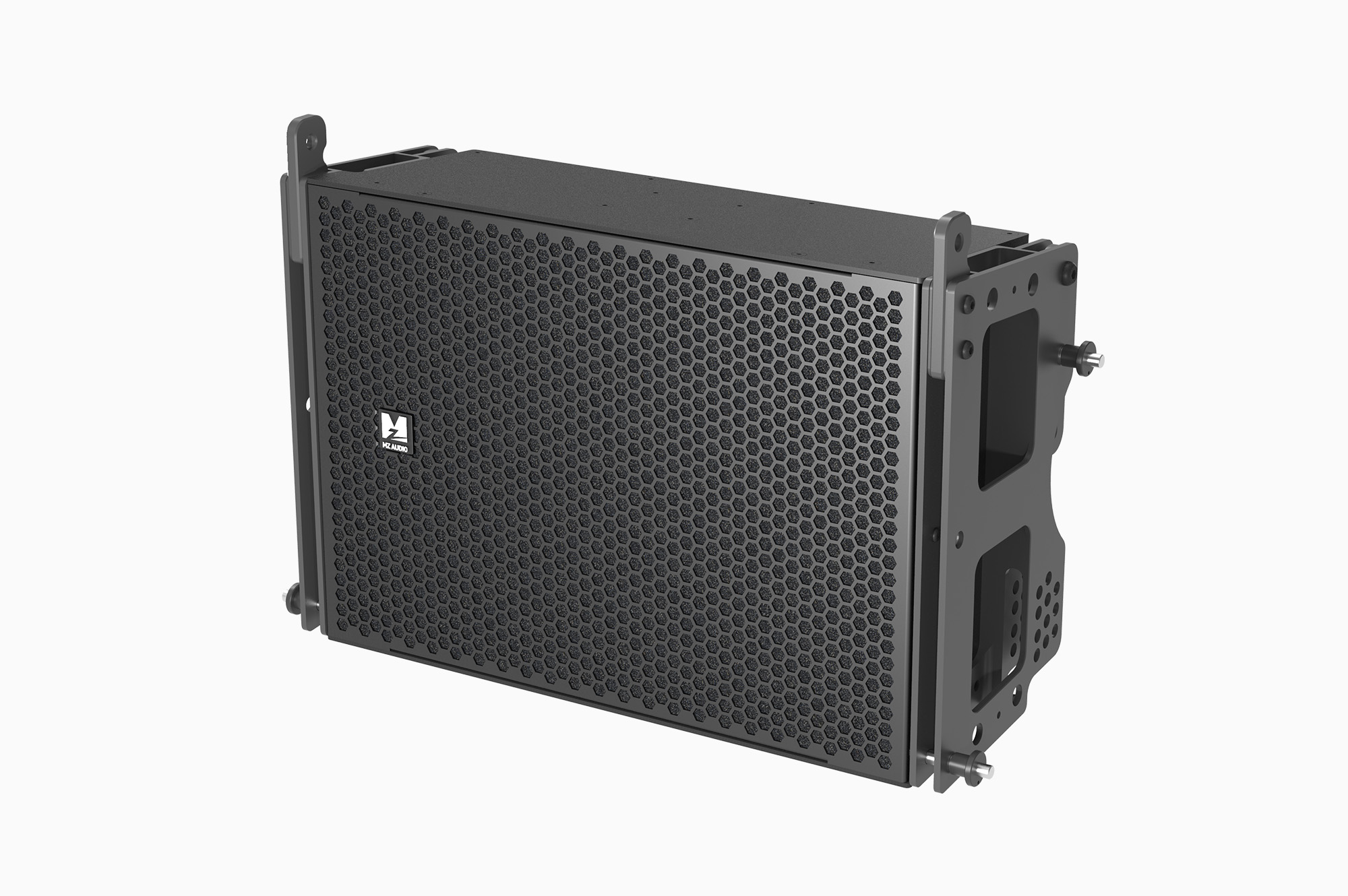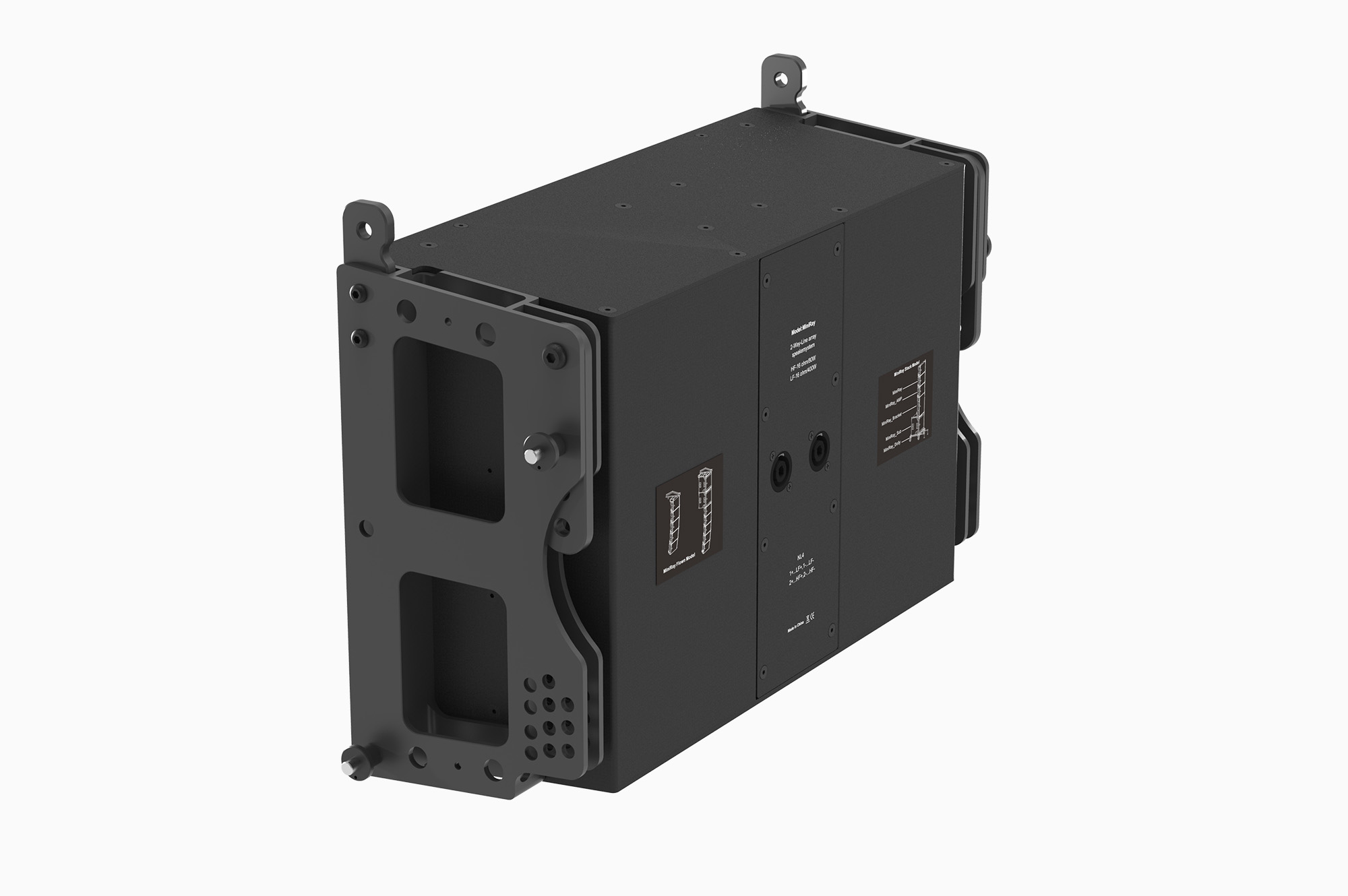 為了進一步控制箱體的重量,我們不僅采用了鋁合金吊掛件,還使用了加纖尼龍材料來制作箱體。在如此緊湊的箱體內,最薄處僅有4mm,用木板已經不可能,用鋁板雖然有足夠的強度,但無法實現足夠輕的重量,模具壓制的加纖尼龍材料箱體成為最佳選擇,音箱的重量控制到了約10kg,這也是足夠讓女性可以輕松操作的重量!