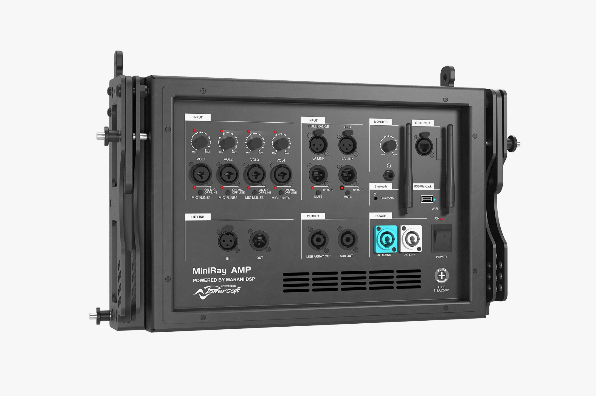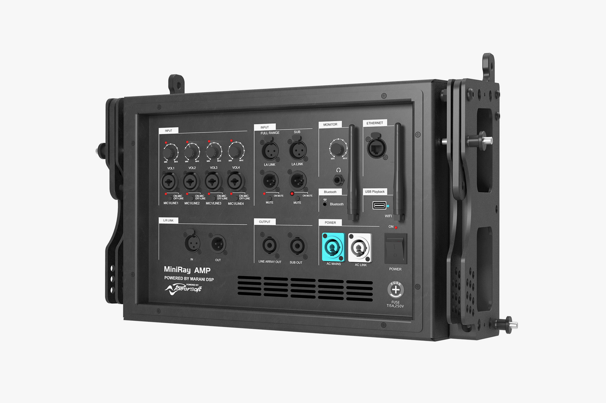 MiniRay-Amp(音源+調音臺+DSP+功放)+ MiniRay音箱構成的系統,讓原本5個部分才能組成的擴聲系統縮減成2個部分。