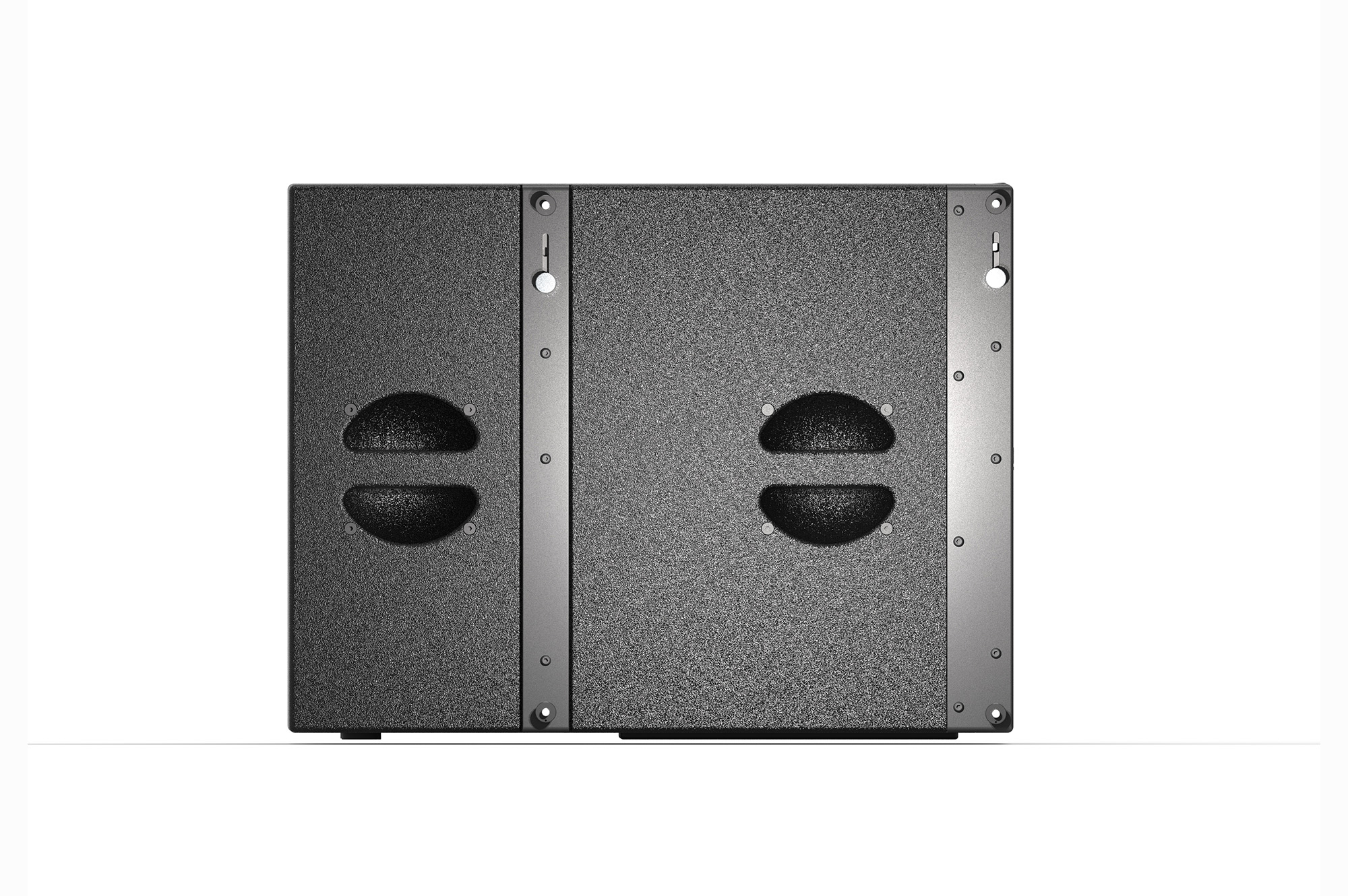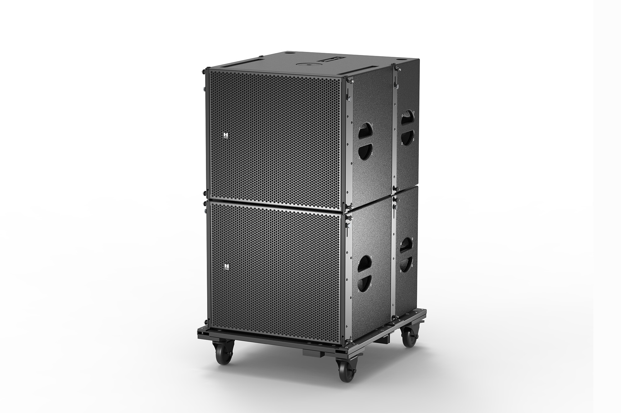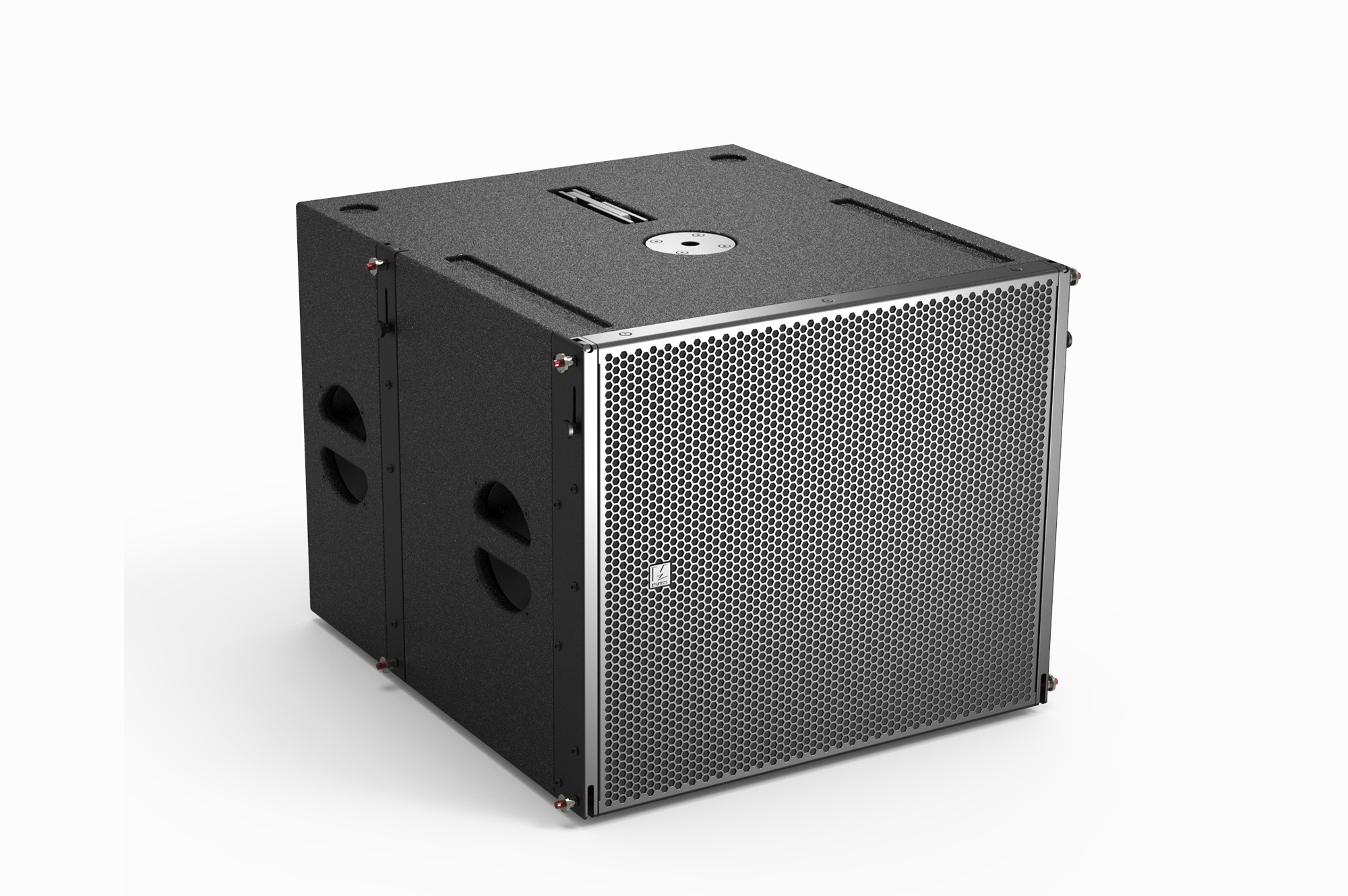 MiniSub18是配套MiniRay10的單18寸帶吊掛件的超低音箱??梢远询B,在低音箱體上安裝了可翻折的支撐鋁連桿,無需另外的轉換架即可實現超低上堆疊全頻??梢詥为氁唤M吊掛,也可以通過一個轉換桿實現在超低下吊掛全頻的狀態。