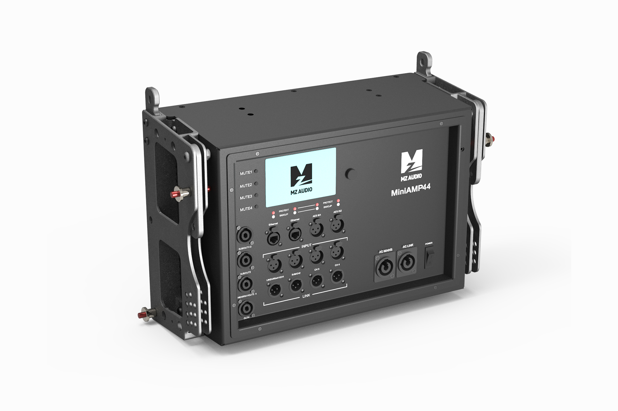 4通道DSP功放 MiniAMP-44是一臺帶4進4出DSP的4通道大功率功放,使用了兩個獨立的高達5000W的開關電源,電源總功率高達10000W,可以實現4個通道同時在4歐負載下滿功率工作!這與常見的共用一個4000-5000w電源的4X1300W四通道功放有非常大的區別。這種設計大大增加了功放應用時的靈活性,可以任意分配功放通道不用顧忌電源余量的問題。彩色的觸摸屏方便了即時控制,無需電腦聯機即可調整參數或調用預設。與MiniRay相同的外尺寸和吊掛件,方便吊掛并與MiniRay兼容,無需使用功放機柜! | ![]() |